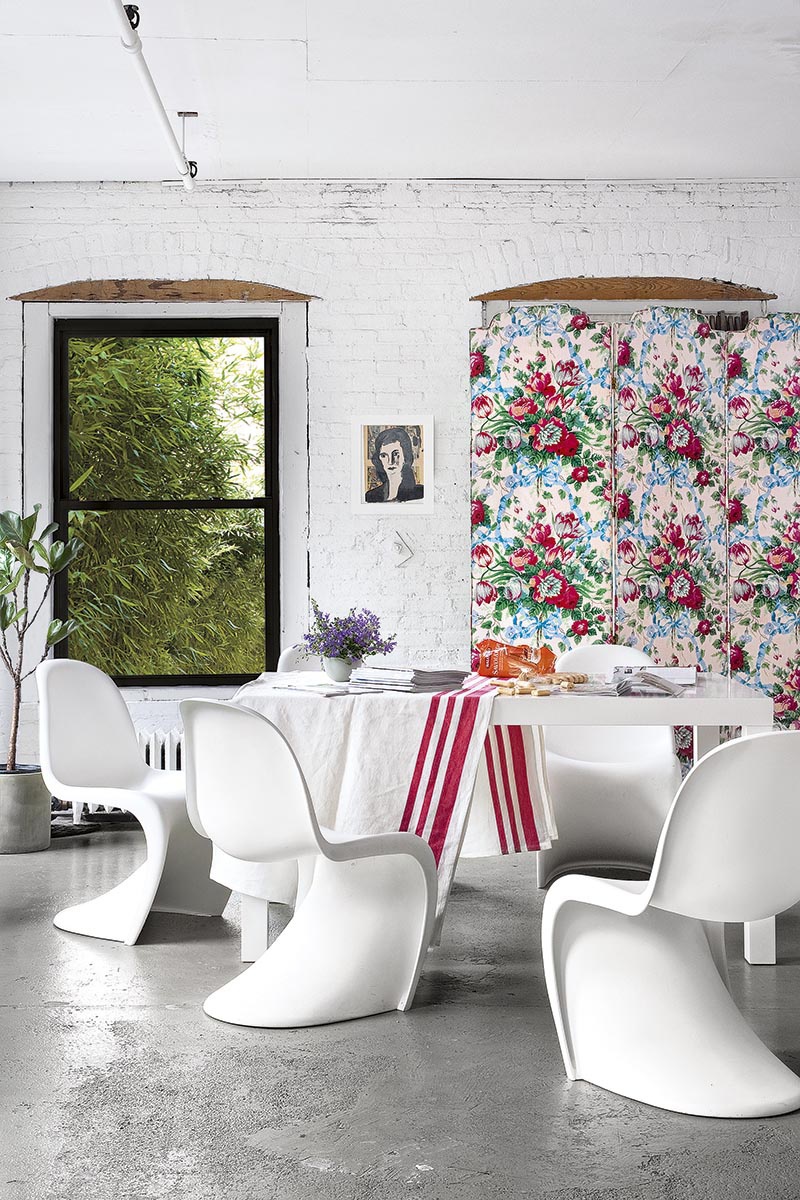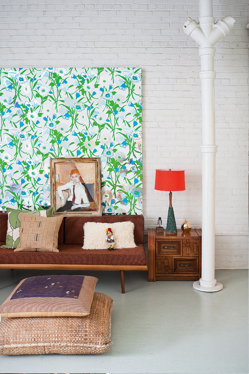 Un panel forrado con papel pintado vintage supone una dosis concentradísima de color.