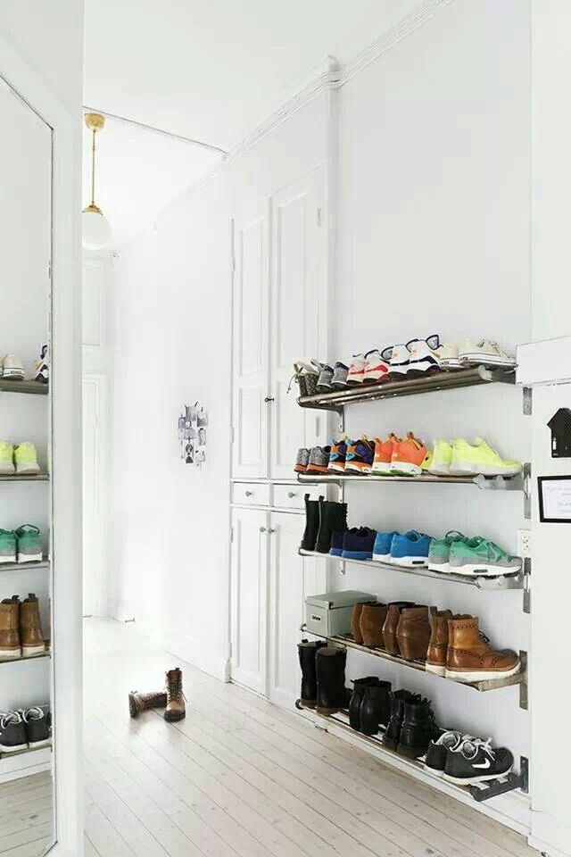 diciembre 22, 2016 percheros-para-zapatos-piasweethome-com-menudoszapatos Estanterías de barras metálicas para calzado deportivo o batas.
