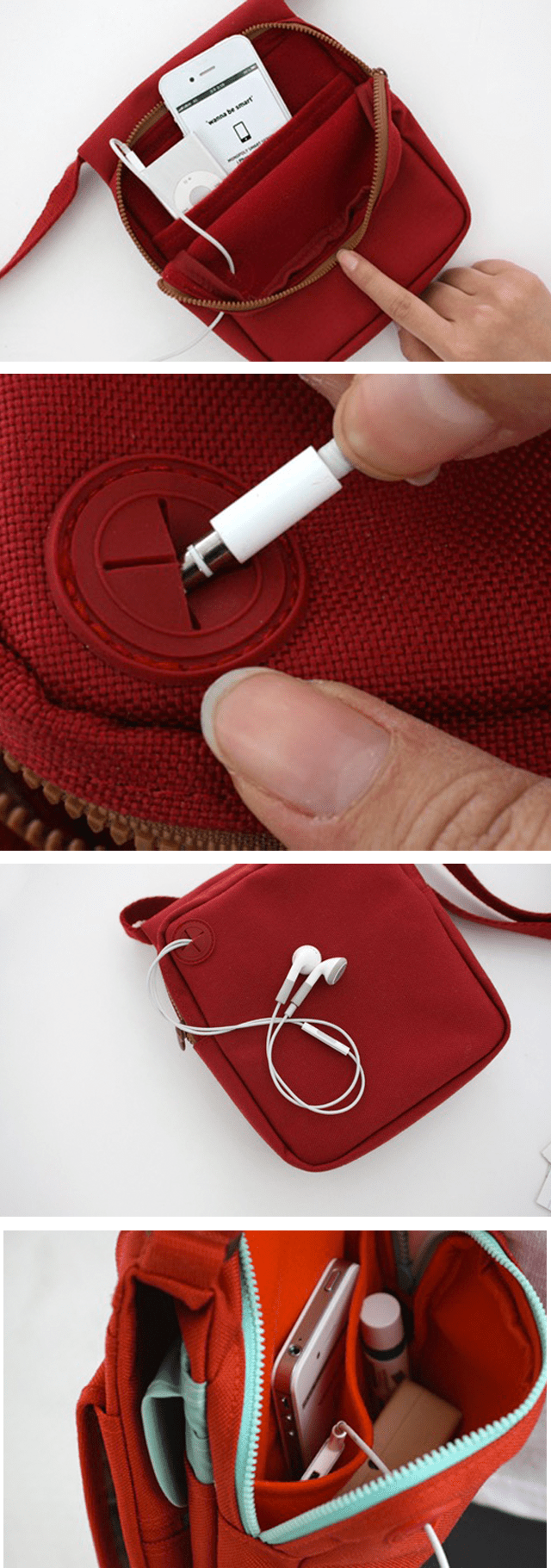 Mi Travel Wallet con cremallera mejor: con toda la documentación organizada –Pasaporte, DNI, tarjetas varias, billetes, monedas, etc…  y como me gusta escuchar música y las noticias pues mira qué invento para no tener que ir con los cables por fuera.