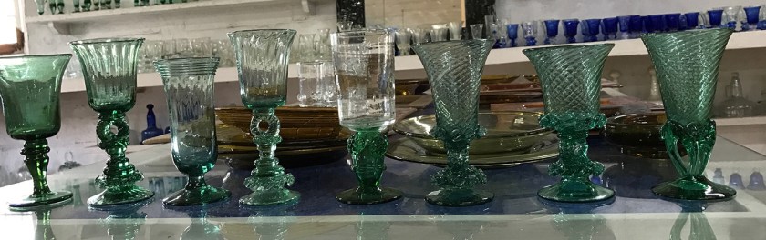 Llevaba años deseando comprar algo de vidrio mallorquín. Un verano me invitaron unos amigos y en el cóctel sacaron unas copas impresionantes. Cada cual diferente pero del mismo tono de color: verde. Les he seguido siempre la pista y al final, después de un periplo, ¡las tengo en casa! Os cuento.